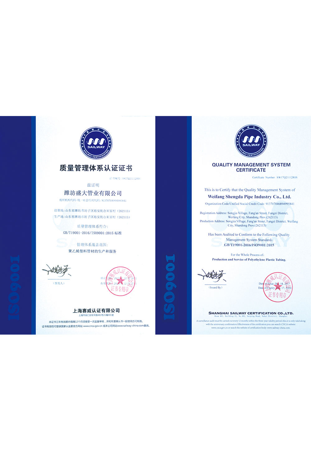 • 質(zhì)量管理體系認(rèn)證證書